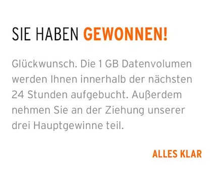 Wer das otelo-Logo 3x freigerubbelt hat, der bekommt das Datenvolumen innerhalb von 24 Stunden gutgeschrieben.