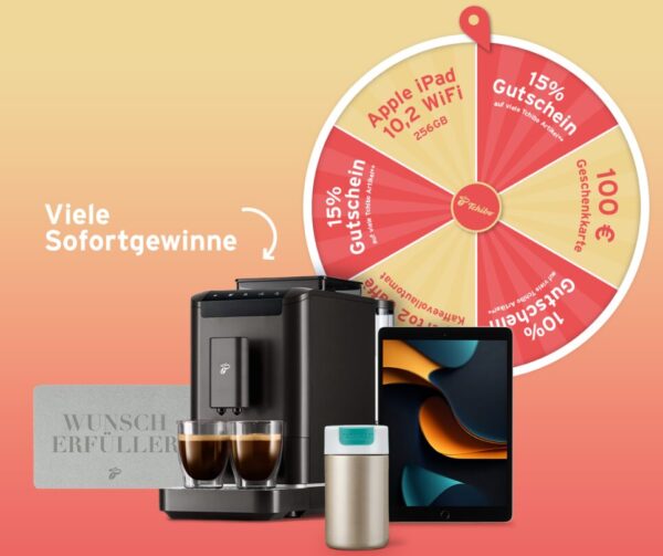 Bei Tchibo gibt es nach Eingabe eurer E-Mail Adresse die Chance das Glücksrad zu drehen und so Sofortgewinne oder Rabattgutscheine zu erhalten.