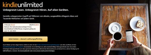 Bei Amazon gibt es für unbestimmte Zeit 3 Monate Kindle Unlimited komplett gratis.