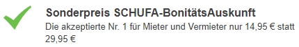 Steht bald ein Umzug an? Viele Vermieter – gerade Privatvermieter – wollen, dass man sich eine eigene SCHUFA-Auskunft organisiert, die dann mal locker 30€ kostet. Dank der meineSCHUFA plus-Mitgliedschaft reduziert sich der Preis jedoch um 50% auf 15€!