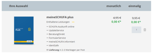 In Kooperation mit MEDION erhält man meineSCHUFA plus (100 Tage Online-Liveauskunft) komplett kostenlos – regulär würden ~25€ anfallen.