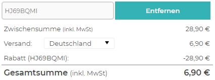 Um auch auf den Preis zu kommen, müsst ihr den Gutschein HJ69BQMI verwenden.