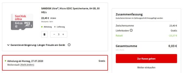*PREISFEHLER* 3x SanDisk Ultra 64GB Speicherkarte für nur 0,03€ bei Abholung im Markt