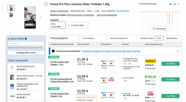 Bei Amazon gibt es einen Preisfehler. Dort gibt es das PURINA PRO PLAN LIVECLEAR Kitten Junior Katzenfutter trocken, reich an Truthahn, 6er Pack (6 x 1,4kg) für 19,37€