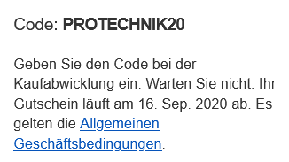 Aber dank dem Gutscheincode: PROTECHNIK20 gibt es bei Ebay noch mehr gute Deals.