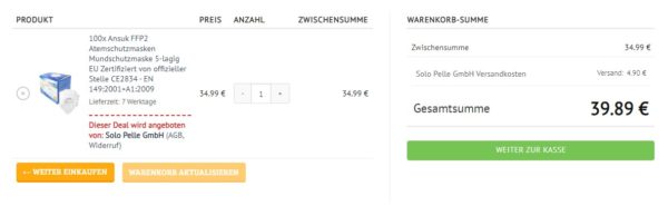 100x Ansuk FFP2 Atemschutzmasken Mundschutzmaske 5-lagig EU Zertifiziert von offizieller Stelle CE2834 – EN 149:2001+A1:2009 für 39,89€ – nur 0,40€/Stück