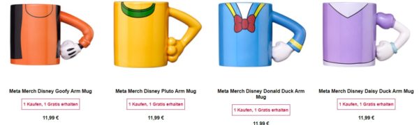 2 Disney-Tassen der Sorte „Arm-Mug“ für 11,99€