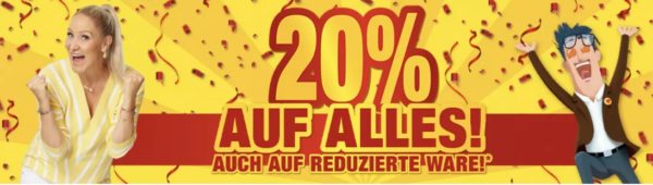 Matthi 24.10.2021, 10:23 #Bis zum 29.10.21 wieder zu haben: 20% auf alles inclusive reduzierte Ware (Aktionsbedingungen beachten).