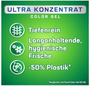 - Für eine saubere Welt – Eine Flasche Persil Waschkonzentrat enthält 65 Waschladungen, 50 % weniger Plastik, besteht zu 100 % aus recycelbarem Plastik und wirkt auch bei niedrigen Wassertemperaturen