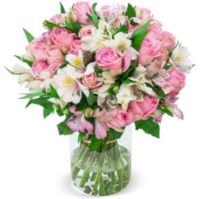 Jetzt NEU! Unser Rosenarrangement „Sweet Surprise“ mit Rosen und Inkalilien. Diese XXL-Blütenpracht erblüht mit bis zu 100 Blüten und sorgt für Freude bei Deinen Beschenkten – Herrlich rosa und extra frisch!
