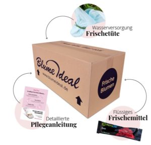 - Spezieller Blumenversandkarton mit Wasserversorgung durch eine Frischetüte