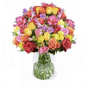Die Rose gilt schon lange als Königin der Blumen und hat eine symbolträchtige Geschichte hinter sich. Die herrlich eleganten Blumen waren schon in Antike und Mittelalter heiß begehrt und lassen sich in zahlreichen Mythen und Märchen finden. Weiß jeder um die Bedeutung der roten Rose für Liebe und Leidenschaft, so versprühen doch auch die anderen Farben zahlreiche positive Gefühle und verbreiten sofort gute Laune. Zu dieser königlich bunten Runde gesellen sich die herrlich duftenden und exotischen Inkalilien mit ihren einzigartig gestrichelten Kronblättern. Die auch als Alstroemeria bekannten Blumen aus den Anden in Südamerika haben ihren Namen dem berühmten schwedischen Naturforscher Carl von Linné zu verdanken. Sie stehen vor allem für Zuneigung, Freundschaft und Vertrauen und erblühen in vielen leuchtend bunten Farben.