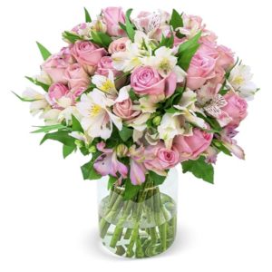 Du suchst einen Blumenstrauß, der einer beschenkten Person eine ganz besonders freudige Überraschung bietet? Dann halte dich fest! Denn dieser geniale “Sweet Surprise” erblüht mit bis zu 100 Blüten und legt einen zarten rosafarbenen Schleier über die Welt. Das großartige Arrangement aus herrlich duftenden pinken Rosen und exotischen weißen Inkalilien ist mit seiner wunderschönen Gestaltung das perfekte Geschenk in einer jungen Beziehung oder für ein ganz besonderes Dankeschön und garantiert eine echte “Süße Überraschung”.