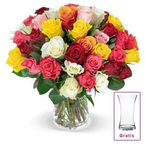 33 bunte Rosen inkl. GRATIS Vase für 24,98€
