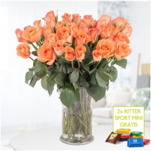 40 orangene Rosen + Schokoladengeschenk & Grußkarte für 24,90€