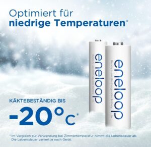 - NEU: eneloop mit erhöhter Kapazität (min. 2000 mAh) und umweltfreundlicher Verpackung