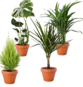 4er-Set Zimmerpflanzen (Monstera, Drachenbaum, Goldfruchtpalme, Zimmerzypresse) 45-70cm für 31,98€