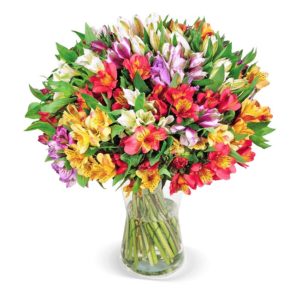 Du suchst leuchtend bunte Blumen mit einer ganz besonderen Blütenpracht? Dann lass uns dir ein echtes Highlight vorstellen, welches sowohl als prachtvolles Blumengeschenk als auch zur Dekoration in der Wohnung für unvergleichliche Momente sorgen wird. Mit unseren 50 bunten Inkalilien wirst du immer alle Blicke auf dich ziehen und verwandelst jede Wohnung in eine frohe Blumenwiese. Hier bekommst du einen wundervollen Blumenstrauß, der mit bis zu 400 Blüten für ein wahrhaft farbenfrohes Spektakel sorgt und keine Langeweile aufkommen lässt. Mit 6-8 Stück pro Stängel präsentieren sich die herrlichen Trichterblüten voller Anmut und sanfter Schönheit und begeistern mit einzigartig gestrichelten oder gepunkteten Kronblättern sowie in zahlreichen unterschiedlichen Farbschattierungen. Von Gelb über Weiß bis Rot ist hier alles dabei. Und auch mit dem frischen und sanften Duft wissen die Inkalilien neue Maßstäbe zu setzen. Das perfekte Blumengeschenk zu jedem frohen Anlass.