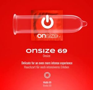 - ONsize Kondome sind geradeaus & ohne Schnickschnack und halten eine passende Größe für jeden bereit. Es gibt sie in 8 nominalen Weiten von 47 bis 72 mm, mit einer Wandstärke von 0,07 mm. Gleitfilm aus Silikonöl