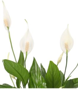 - Schließlich will auch das Spathiphyllum noch ihr wundervolles Hochblatt präsentieren. Selbiges symbolisiert in elegantem Weiß Frieden und Wohlstand. Sie ist sehr pflegeleicht und zudem ein effektiver Sauerstoffproduzent. Ihre Fähigkeit, die Luft von Giftstoffen zu reinigen, wurde sogar zusammen mit dem zuvor genannten Drachenbaum von der NASA bestätigt. Wenn das mal keine guten Gründe sind, die für dieses Set sprechen