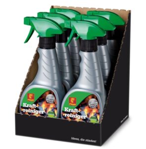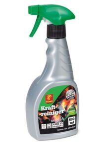 - Flash Kraftreiniger auf den verschmutzten Grillrost oder das verrußte Kaminglas aufsprühen