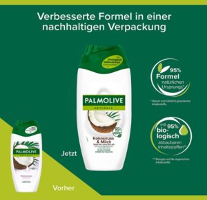 Die Produkte von Palmolive sind bekannt für ihre Wirksamkeit und ihren angenehmen Duft. Viele der Produkte enthalten natürliche Inhaltsstoffe wie Olivenöl, Mandelmilch und Aloe Vera, die dazu beitragen, die Haut zu pflegen und zu befeuchten.