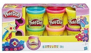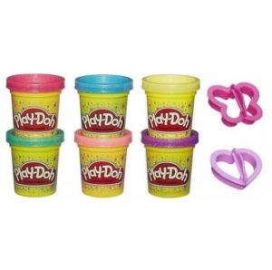 - Dieses 6er-Pack Play-Doh enthält Spielknete, die mit jeder Menge Glitzer gemischt ist sowie 2 Ausstecher in Schmetterlings- und Herzform