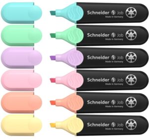 - Lieferumfang: 6er Set Schneider Job 150 Pastell Textmarker in den Schreibfarben türkis, mint, flieder, rosé, pfirsich, vanille