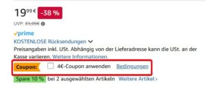Aktiviert den 4€ Coupon auf der Produktseite und schon kommt ihr auf den genannten Preis.