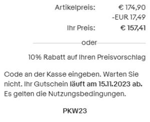 Nutzt den Gutschein PKW23 und schon kommt ihr auf den Preis.