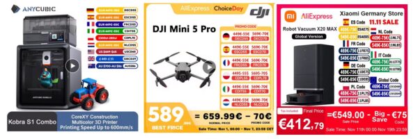 Am 11. November startet wieder das Shopping-Highlight des Jahres: der AliExpress Singles‘ Day! 🌟 Freut euch auf riesige Rabatte auf Technik, Gadgets und Haushaltsprodukte – und mit den Gutscheinen spart ihr noch mehr.