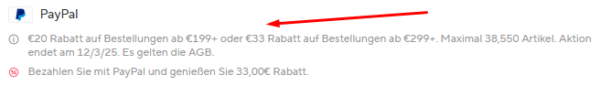 🏷️ Extra sparen dank bis zu 33€ Paypal Rabatt: