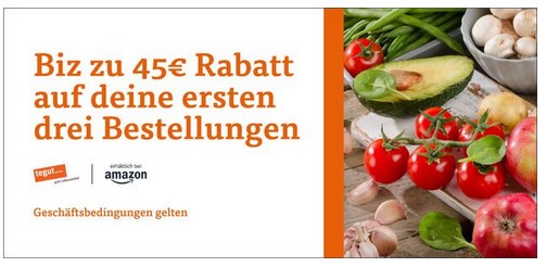 Neue Aktion von Amazon dort könnt ihr euch nun bis zu 45€ Rabatt für tegut Einkäufe sichern.