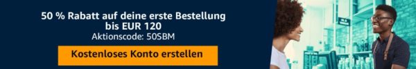 Bei Amazon bekommt ihr nun die Möglichkeit bei Amazon Business 50% Rabatt (max 60€) auf die erste Bestellung bis 120€ zu erhalten
