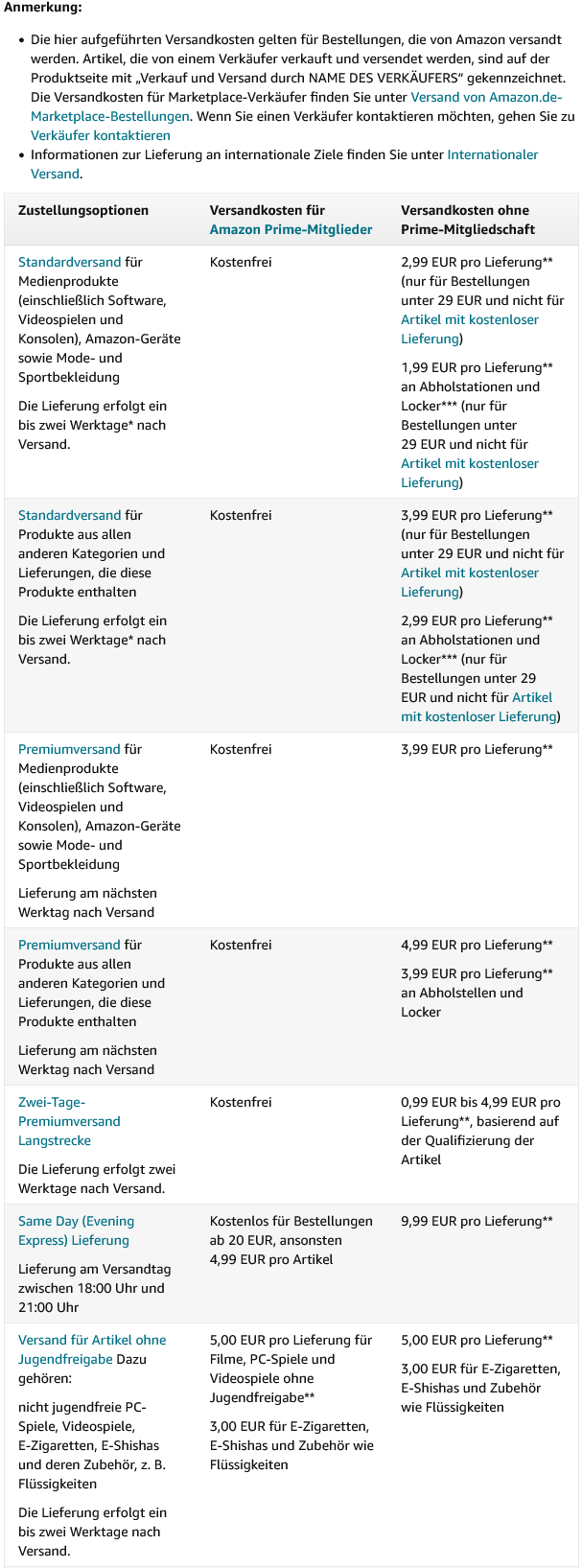Das geht für nicht Prime Mitglieder bei 2,99 € los, kann aber auch 9,99 € betragen.