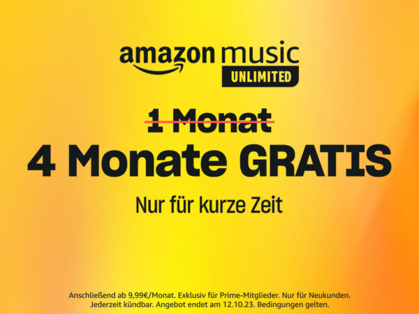 - Für eine begrenzte Zeit können Prime-Mitglieder, die neue Abonnenten von Amazon Music Unlimited sind, vier Monate lang kostenlos auf mehr als 100 Millionen Songs und Top-Podcasts zugreifen – werbefrei, on-demand und in hochwertiger Streaming-Qualität. Darüber hinaus können Prime-Mitglieder, die Amazon Music Unlimited abonniert haben, vier Monate lang ohne zusätzliche Kosten auf ein Familien- Abonnement upgraden.