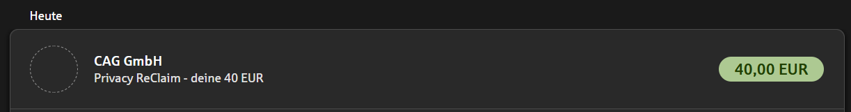 - 40€ Auszahlung: Laut WBS/Privacy ReClaim kommt das Geld wenige Tage nach erfolgreichem Abschluss/Prüfung aufs Konto.