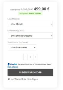 - Maximale Erträge – mit mehr Modulen & Batterien Regulär kannst du bis zu vier Solarmodule anschließen. Bei Bedarf ist der Anschluss von bis zu acht Solarmodulen möglich – mithilfe von optionalen Y-Verbindern. Rüste den Speicher bei Bedarf mit bis zu fünf Erweiterungsbatterien nach und profitiere von einer Speicherkapazität von bis zu 9,6 kWh. Durch die einfache Stapelbarkeit der Batterien (Plug & Play) gelingt die Installation im Handumdrehen.