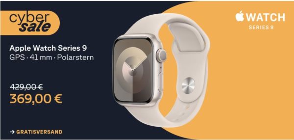 Bei Cyberport bekommt ihr als Cyber-Sale Angebot die Apple Watch Series 9 41mm GPS Aluminium Polarstern Sportarmband für 369€ (Vergleichspreis ~395€) Ersparnis ~26€