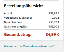für 84,99€ (Vergleichspreis: ~130€) Ersparnis ~49€