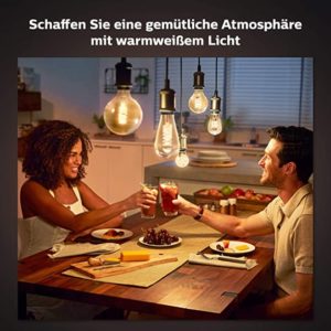 - Erleben Sie mit Hue Filament Lampen angenehmes, warmweißes Licht und verleihen Sie Ihrem Zuhause durch stufenloses Dimmen das perfekte Ambiente