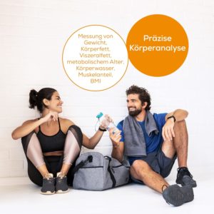 - EINFACHE BEDIENUNG: Die Anzeige des Körpergewichts erfolgt in 100 g-Schritten, die Körpermessung wird auf 0,1% genau angezeigt – dank Ein- und Abschaltautomatik ist eine einfache Handhabung garantiert