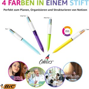 - Lieferumfang: BIC Kugelschreiber mehrfarbig / 4 Farben in einem Stift / BIC 4 colours / Strichstärke 0,32mm / Schreiblänge 5km