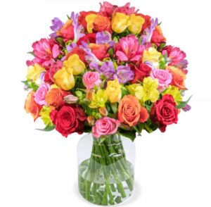 - Inhalt: 20 Stiele – Mischung aus Rosen und Inkalilien als Strauß gebunden (40-50cm Länge)