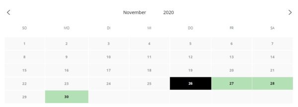 Der Blumenstrauß kann an den folgenden Tagen geliefert werden (grün hinterlegt).