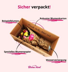 - Extras: Spezieller Blumenversandkarton mit Wasserversorgung durch eine Frischetüte