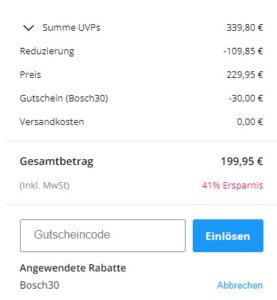 Nutzt den Gutschein BOSCH30 und schon kommt ihr auf den genannten Preis.