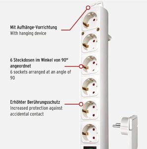 - Ideal geeignet für Winkelstecker und den Betrieb von Netzgeräten, da 90° Winkel Anordnung der Steckdosen