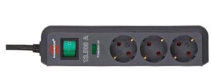 - Steckerleiste mit beleuchtetem Sicherheitsschalter zum Ein- und Ausschalten (zweipolig) und Funktionskontroll-Leuchte