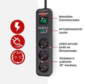 Brennenstuhl Eco-Line, Steckdosenleiste 3-fach mit Überspannungsschutz (Mehrfachsteckdose mit Schalter) für 9,99€